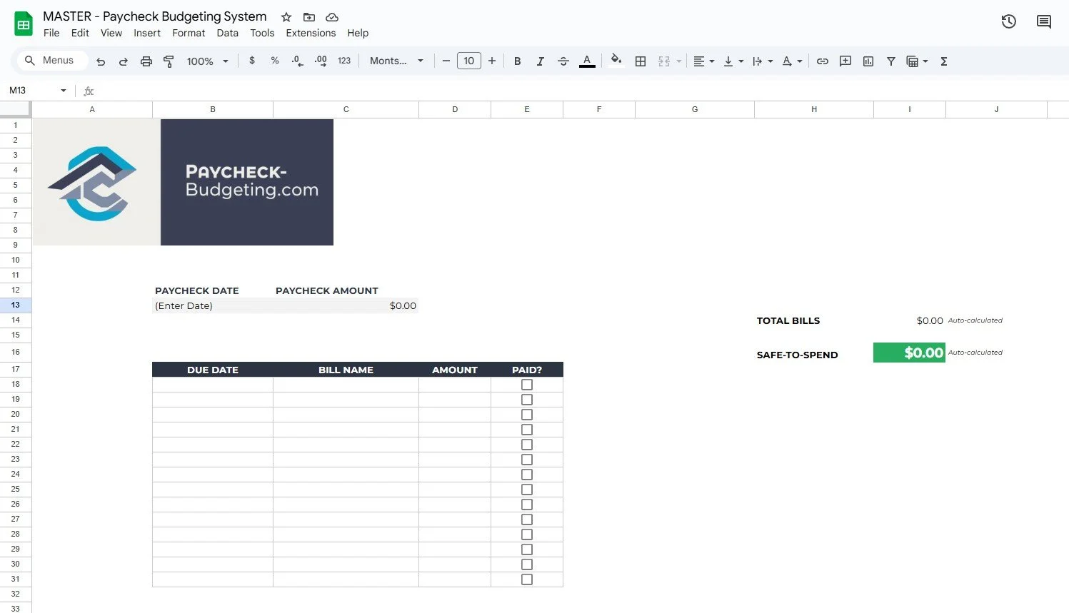Stop guessing your bank balance. Download the template, plug in your numbers, and find your "Safe-to-Spend" number instantly.